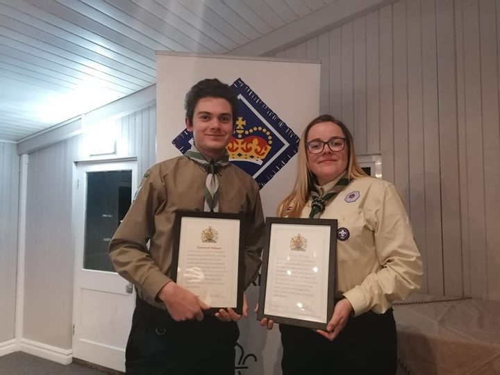 A huge well done to Cameron Misson and Katie Frost who finally collected their Queen Scout Award (QSA) on Friday after a couple of years or waiting.