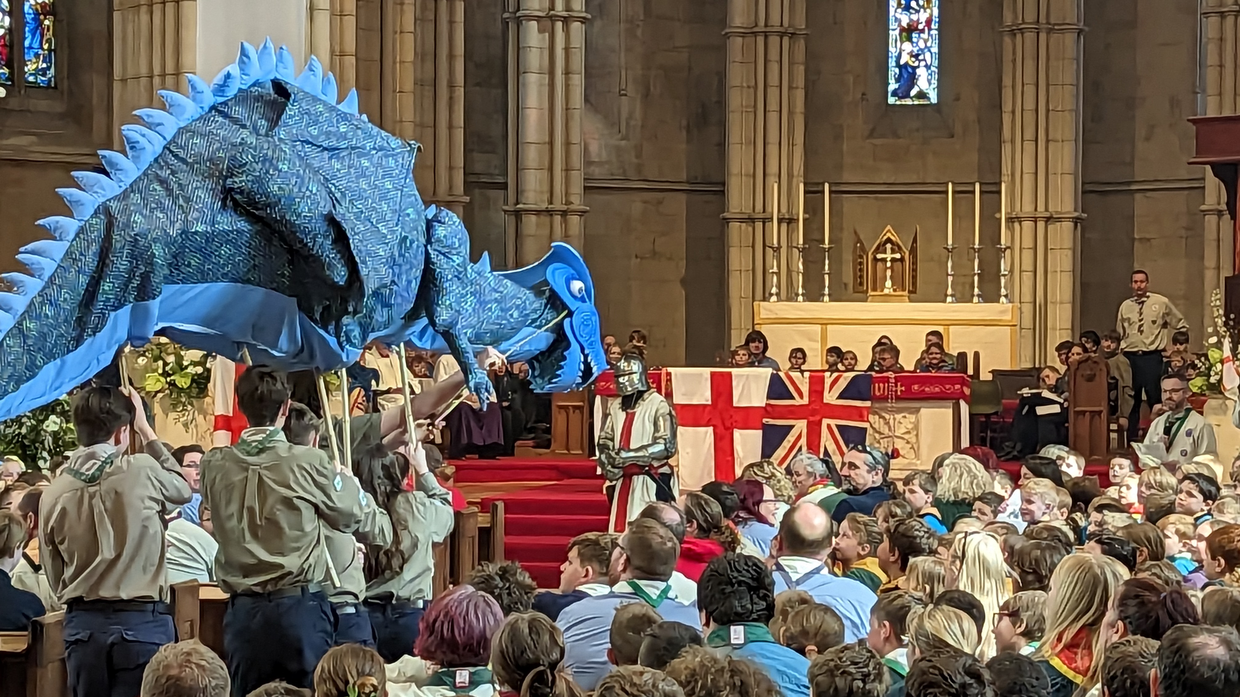 An absolutely fantastic effort from some of our leadership and helpers to put on such a show and for us to have our very own St George vs the dragon battle.