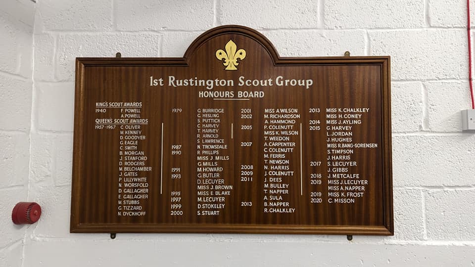Our original ‘Honours Board’ for our King and Queens Scout Award holders, almost perfectly timed for retirement after the passing of the Queen.