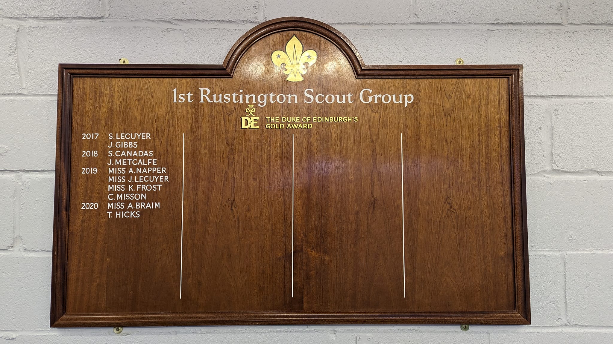 Our new ‘King’s Scout Award’ board, now in prime place ready to start loading with names in the not too distant future.