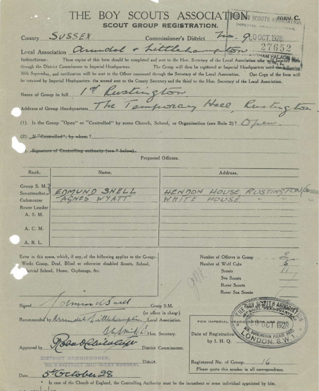 With thanks to the Heritage Team and Gilwell Park, we’ve managed to get our hands on a copy of the 1928 registration certificate.